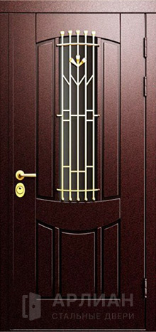 Двустворчатая дверь со стеклом и кованной решеткой №2