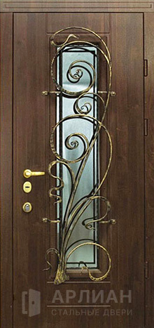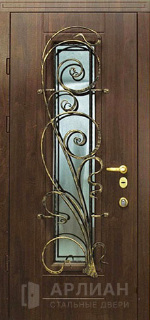 Кованая входная дверь в частный дом со стеклопакетом №4