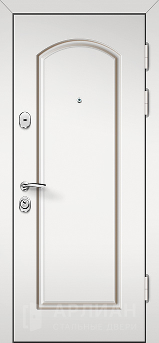 Стальная дверь белого цвета с панелью МДФ и молдингом №96