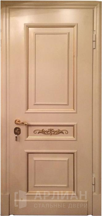 Белая дверь входная металлическая с зеркалом внутри и усиленными петлями №76
