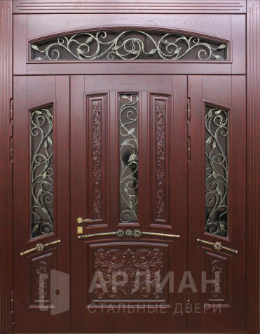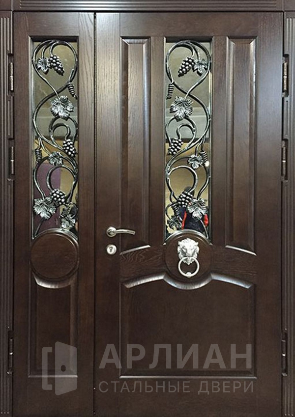 Входная дверь для загородного дома с коваными элементами №115